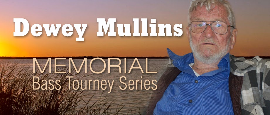 In 2013, we had 23 anglers competing. Winners were as follows: 1st Place - Michael Sims and Chris Napier, 26.37 lbs. two-day total weight; 2nd Place - Randy Conkle and Bob Glass, 22.05 lbs. two-day total weight; and 3rd Place - Jesse Munden, 22.01 lbs. two-day total weight. Big Fish winner was Rob Powell, with a 4.78-lb. bass. And for the first time ever in the history of the Dewey Mullins Memorial Bass Tourney Series, Angler of the Year title went to Bob Glass, who amassed a total weight of 146.92 lbs. throughout the course of the year's tournament schedule. Bob also repeated as winner of the Seasonal Lunker Award for a bass weighing 6.89 lbs. that he caught Sept. 7, 2013.
