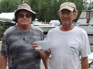 (From left) Skip Schaible and Mitch Portervint, mystery-weight winners, three fish, 3.31 lbs. total weight, no big bass. Their total weight was closest to the 3.30-lb. tab that was drawn.
